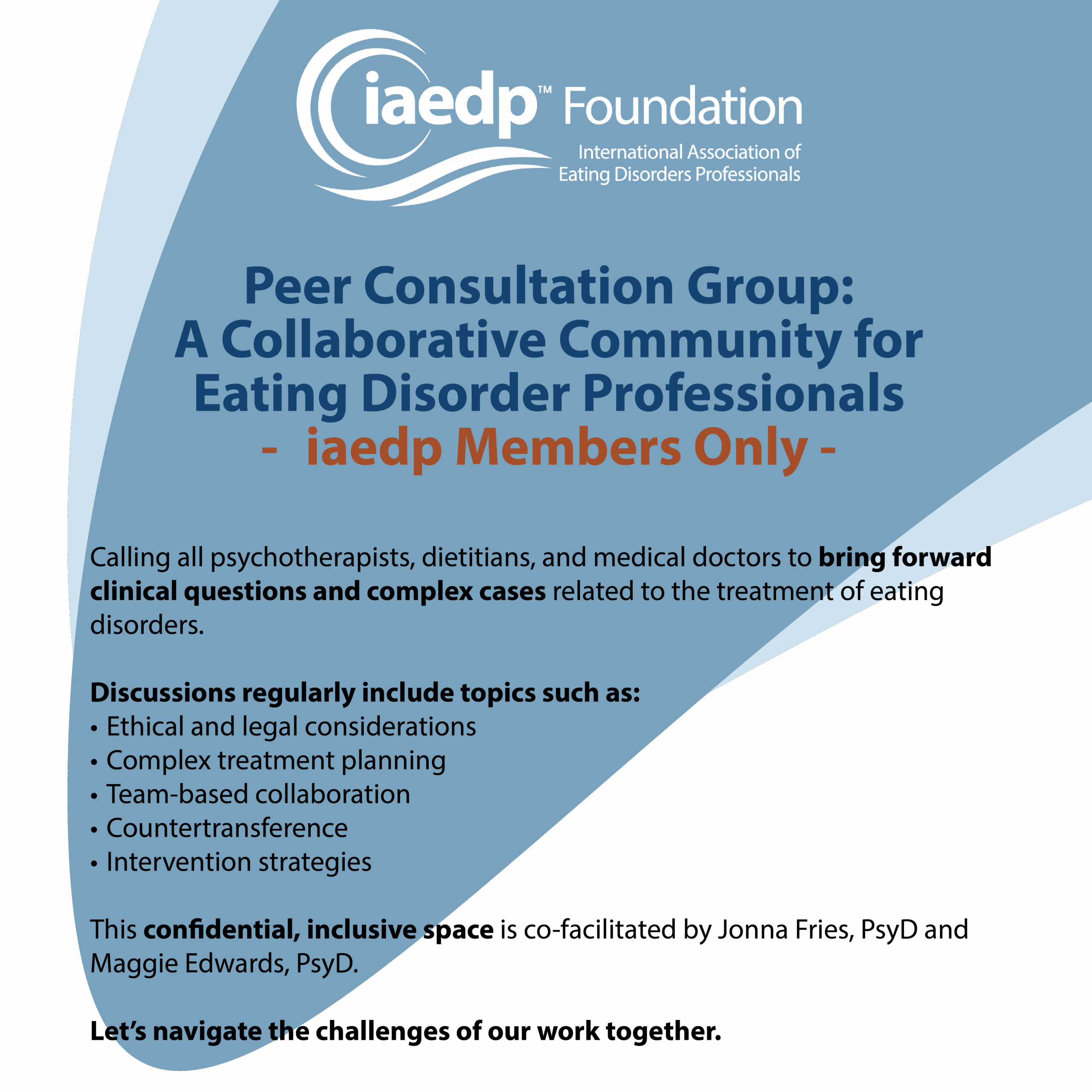 May 26, 2026 @ 3:00 pm - 4:00 pm EDT Peer Consultation Group: A Collaborative Community for Eating Disorder Professionals